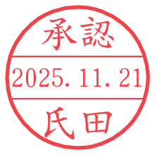 オプションの「電子透かし」をチェックし[生成]すると、見た目には分からないように、UNIXタイムスタンプを識別情報としてPNG形式の日付印に埋め込みます。 日付スタンプメーカーの使い方「部署」「名前」は最大8文字まで入力が可能です。「スタンプの色」を選択し、[生成]ボタン押下で印影画像が更新され、背景を透明に設定したPNG形式とPDF形式の印影画像がリンクからダウンロードできます。 オプションの「電子透かし」は、その性格上日付印ととても相性の良い付加サービスです。 別ページの「タイムスタンプと電子透かし」でも詳しく解説しますが、このオプションを追加することで、日付印が生成された日時に確かにその印が存在していることが証明されます。 ![]() 氏田さんの電子印鑑が作れます。社内でのデータ書類閲覧確認用など、認印的な使い方のできる電子印鑑が作れます。 ![]() 古代文字で落款印が作れます。「落款スタンプメーカー」で作品を引き立たせる落款印が作れます。