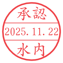 オプションの「電子透かし」をチェックし[生成]すると、見た目には分からないように、UNIXタイムスタンプを識別情報としてPNG形式の日付印に埋め込みます。 日付スタンプメーカーの使い方「部署」「名前」は最大8文字まで入力が可能です。「スタンプの色」を選択し、[生成]ボタン押下で印影画像が更新され、背景を透明に設定したPNG形式とPDF形式の印影画像がリンクからダウンロードできます。 オプションの「電子透かし」は、その性格上日付印ととても相性の良い付加サービスです。 別ページの「タイムスタンプと電子透かし」でも詳しく解説しますが、このオプションを追加することで、日付印が生成された日時に確かにその印が存在していることが証明されます。 ![]() 水内さんの電子印鑑が作れます。社内でのデータ書類閲覧確認用など、認印的な使い方のできる電子印鑑が作れます。 ![]() 古代文字で落款印が作れます。「落款スタンプメーカー」で作品を引き立たせる落款印が作れます。