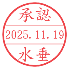 オプションの「電子透かし」をチェックし[生成]すると、見た目には分からないように、UNIXタイムスタンプを識別情報としてPNG形式の日付印に埋め込みます。 日付スタンプメーカーの使い方「部署」「名前」は最大8文字まで入力が可能です。「スタンプの色」を選択し、[生成]ボタン押下で印影画像が更新され、背景を透明に設定したPNG形式とPDF形式の印影画像がリンクからダウンロードできます。 オプションの「電子透かし」は、その性格上日付印ととても相性の良い付加サービスです。 別ページの「タイムスタンプと電子透かし」でも詳しく解説しますが、このオプションを追加することで、日付印が生成された日時に確かにその印が存在していることが証明されます。 ![]() 水垂さんの電子印鑑が作れます。社内でのデータ書類閲覧確認用など、認印的な使い方のできる電子印鑑が作れます。 ![]() 古代文字で落款印が作れます。「落款スタンプメーカー」で作品を引き立たせる落款印が作れます。