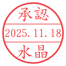 オプションの「電子透かし」をチェックし[生成]すると、見た目には分からないように、UNIXタイムスタンプを識別情報としてPNG形式の日付印に埋め込みます。 日付スタンプメーカーの使い方「部署」「名前」は最大8文字まで入力が可能です。「スタンプの色」を選択し、[生成]ボタン押下で印影画像が更新され、背景を透明に設定したPNG形式とPDF形式の印影画像がリンクからダウンロードできます。 オプションの「電子透かし」は、その性格上日付印ととても相性の良い付加サービスです。 別ページの「タイムスタンプと電子透かし」でも詳しく解説しますが、このオプションを追加することで、日付印が生成された日時に確かにその印が存在していることが証明されます。 ![]() 水晶さんの電子印鑑が作れます。社内でのデータ書類閲覧確認用など、認印的な使い方のできる電子印鑑が作れます。 ![]() 古代文字で落款印が作れます。「落款スタンプメーカー」で作品を引き立たせる落款印が作れます。