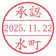 オプションの「電子透かし」をチェックし[生成]すると、見た目には分からないように、UNIXタイムスタンプを識別情報としてPNG形式の日付印に埋め込みます。 日付スタンプメーカーの使い方「部署」「名前」は最大8文字まで入力が可能です。「スタンプの色」を選択し、[生成]ボタン押下で印影画像が更新され、背景を透明に設定したPNG形式とPDF形式の印影画像がリンクからダウンロードできます。 オプションの「電子透かし」は、その性格上日付印ととても相性の良い付加サービスです。 別ページの「タイムスタンプと電子透かし」でも詳しく解説しますが、このオプションを追加することで、日付印が生成された日時に確かにその印が存在していることが証明されます。 ![]() 水町さんの電子印鑑が作れます。社内でのデータ書類閲覧確認用など、認印的な使い方のできる電子印鑑が作れます。 ![]() 古代文字で落款印が作れます。「落款スタンプメーカー」で作品を引き立たせる落款印が作れます。