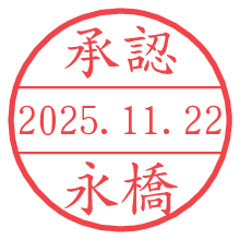 オプションの「電子透かし」をチェックし[生成]すると、見た目には分からないように、UNIXタイムスタンプを識別情報としてPNG形式の日付印に埋め込みます。 日付スタンプメーカーの使い方「部署」「名前」は最大8文字まで入力が可能です。「スタンプの色」を選択し、[生成]ボタン押下で印影画像が更新され、背景を透明に設定したPNG形式とPDF形式の印影画像がリンクからダウンロードできます。 オプションの「電子透かし」は、その性格上日付印ととても相性の良い付加サービスです。 別ページの「タイムスタンプと電子透かし」でも詳しく解説しますが、このオプションを追加することで、日付印が生成された日時に確かにその印が存在していることが証明されます。 ![]() 永橋さんの電子印鑑が作れます。社内でのデータ書類閲覧確認用など、認印的な使い方のできる電子印鑑が作れます。 ![]() 古代文字で落款印が作れます。「落款スタンプメーカー」で作品を引き立たせる落款印が作れます。