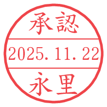 オプションの「電子透かし」をチェックし[生成]すると、見た目には分からないように、UNIXタイムスタンプを識別情報としてPNG形式の日付印に埋め込みます。 日付スタンプメーカーの使い方「部署」「名前」は最大8文字まで入力が可能です。「スタンプの色」を選択し、[生成]ボタン押下で印影画像が更新され、背景を透明に設定したPNG形式とPDF形式の印影画像がリンクからダウンロードできます。 オプションの「電子透かし」は、その性格上日付印ととても相性の良い付加サービスです。 別ページの「タイムスタンプと電子透かし」でも詳しく解説しますが、このオプションを追加することで、日付印が生成された日時に確かにその印が存在していることが証明されます。 ![]() 永里さんの電子印鑑が作れます。社内でのデータ書類閲覧確認用など、認印的な使い方のできる電子印鑑が作れます。 ![]() 古代文字で落款印が作れます。「落款スタンプメーカー」で作品を引き立たせる落款印が作れます。