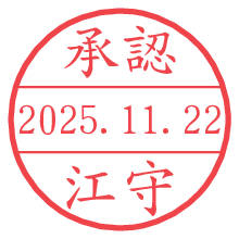 オプションの「電子透かし」をチェックし[生成]すると、見た目には分からないように、UNIXタイムスタンプを識別情報としてPNG形式の日付印に埋め込みます。 日付スタンプメーカーの使い方「部署」「名前」は最大8文字まで入力が可能です。「スタンプの色」を選択し、[生成]ボタン押下で印影画像が更新され、背景を透明に設定したPNG形式とPDF形式の印影画像がリンクからダウンロードできます。 オプションの「電子透かし」は、その性格上日付印ととても相性の良い付加サービスです。 別ページの「タイムスタンプと電子透かし」でも詳しく解説しますが、このオプションを追加することで、日付印が生成された日時に確かにその印が存在していることが証明されます。 ![]() 江守さんの電子印鑑が作れます。社内でのデータ書類閲覧確認用など、認印的な使い方のできる電子印鑑が作れます。 ![]() 古代文字で落款印が作れます。「落款スタンプメーカー」で作品を引き立たせる落款印が作れます。