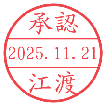 オプションの「電子透かし」をチェックし[生成]すると、見た目には分からないように、UNIXタイムスタンプを識別情報としてPNG形式の日付印に埋め込みます。 日付スタンプメーカーの使い方「部署」「名前」は最大8文字まで入力が可能です。「スタンプの色」を選択し、[生成]ボタン押下で印影画像が更新され、背景を透明に設定したPNG形式とPDF形式の印影画像がリンクからダウンロードできます。 オプションの「電子透かし」は、その性格上日付印ととても相性の良い付加サービスです。 別ページの「タイムスタンプと電子透かし」でも詳しく解説しますが、このオプションを追加することで、日付印が生成された日時に確かにその印が存在していることが証明されます。 ![]() 江渡さんの電子印鑑が作れます。社内でのデータ書類閲覧確認用など、認印的な使い方のできる電子印鑑が作れます。 ![]() 古代文字で落款印が作れます。「落款スタンプメーカー」で作品を引き立たせる落款印が作れます。