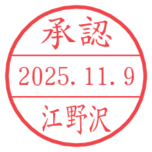 オプションの「電子透かし」をチェックし[生成]すると、見た目には分からないように、UNIXタイムスタンプを識別情報としてPNG形式の日付印に埋め込みます。 日付スタンプメーカーの使い方「部署」「名前」は最大8文字まで入力が可能です。「スタンプの色」を選択し、[生成]ボタン押下で印影画像が更新され、背景を透明に設定したPNG形式とPDF形式の印影画像がリンクからダウンロードできます。 オプションの「電子透かし」は、その性格上日付印ととても相性の良い付加サービスです。 別ページの「タイムスタンプと電子透かし」でも詳しく解説しますが、このオプションを追加することで、日付印が生成された日時に確かにその印が存在していることが証明されます。 ![]() 江野沢さんの電子印鑑が作れます。社内でのデータ書類閲覧確認用など、認印的な使い方のできる電子印鑑が作れます。 ![]() 古代文字で落款印が作れます。「落款スタンプメーカー」で作品を引き立たせる落款印が作れます。