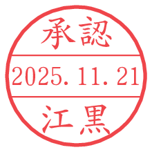 オプションの「電子透かし」をチェックし[生成]すると、見た目には分からないように、UNIXタイムスタンプを識別情報としてPNG形式の日付印に埋め込みます。 日付スタンプメーカーの使い方「部署」「名前」は最大8文字まで入力が可能です。「スタンプの色」を選択し、[生成]ボタン押下で印影画像が更新され、背景を透明に設定したPNG形式とPDF形式の印影画像がリンクからダウンロードできます。 オプションの「電子透かし」は、その性格上日付印ととても相性の良い付加サービスです。 別ページの「タイムスタンプと電子透かし」でも詳しく解説しますが、このオプションを追加することで、日付印が生成された日時に確かにその印が存在していることが証明されます。 ![]() 江黒さんの電子印鑑が作れます。社内でのデータ書類閲覧確認用など、認印的な使い方のできる電子印鑑が作れます。 ![]() 古代文字で落款印が作れます。「落款スタンプメーカー」で作品を引き立たせる落款印が作れます。