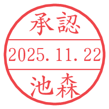オプションの「電子透かし」をチェックし[生成]すると、見た目には分からないように、UNIXタイムスタンプを識別情報としてPNG形式の日付印に埋め込みます。 日付スタンプメーカーの使い方「部署」「名前」は最大8文字まで入力が可能です。「スタンプの色」を選択し、[生成]ボタン押下で印影画像が更新され、背景を透明に設定したPNG形式とPDF形式の印影画像がリンクからダウンロードできます。 オプションの「電子透かし」は、その性格上日付印ととても相性の良い付加サービスです。 別ページの「タイムスタンプと電子透かし」でも詳しく解説しますが、このオプションを追加することで、日付印が生成された日時に確かにその印が存在していることが証明されます。 ![]() 池森さんの電子印鑑が作れます。社内でのデータ書類閲覧確認用など、認印的な使い方のできる電子印鑑が作れます。 ![]() 古代文字で落款印が作れます。「落款スタンプメーカー」で作品を引き立たせる落款印が作れます。