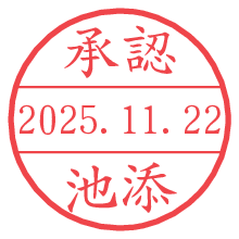 オプションの「電子透かし」をチェックし[生成]すると、見た目には分からないように、UNIXタイムスタンプを識別情報としてPNG形式の日付印に埋め込みます。 日付スタンプメーカーの使い方「部署」「名前」は最大8文字まで入力が可能です。「スタンプの色」を選択し、[生成]ボタン押下で印影画像が更新され、背景を透明に設定したPNG形式とPDF形式の印影画像がリンクからダウンロードできます。 オプションの「電子透かし」は、その性格上日付印ととても相性の良い付加サービスです。 別ページの「タイムスタンプと電子透かし」でも詳しく解説しますが、このオプションを追加することで、日付印が生成された日時に確かにその印が存在していることが証明されます。 ![]() 池添さんの電子印鑑が作れます。社内でのデータ書類閲覧確認用など、認印的な使い方のできる電子印鑑が作れます。 ![]() 古代文字で落款印が作れます。「落款スタンプメーカー」で作品を引き立たせる落款印が作れます。