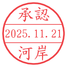 オプションの「電子透かし」をチェックし[生成]すると、見た目には分からないように、UNIXタイムスタンプを識別情報としてPNG形式の日付印に埋め込みます。 日付スタンプメーカーの使い方「部署」「名前」は最大8文字まで入力が可能です。「スタンプの色」を選択し、[生成]ボタン押下で印影画像が更新され、背景を透明に設定したPNG形式とPDF形式の印影画像がリンクからダウンロードできます。 オプションの「電子透かし」は、その性格上日付印ととても相性の良い付加サービスです。 別ページの「タイムスタンプと電子透かし」でも詳しく解説しますが、このオプションを追加することで、日付印が生成された日時に確かにその印が存在していることが証明されます。 ![]() 河岸さんの電子印鑑が作れます。社内でのデータ書類閲覧確認用など、認印的な使い方のできる電子印鑑が作れます。 ![]() 古代文字で落款印が作れます。「落款スタンプメーカー」で作品を引き立たせる落款印が作れます。