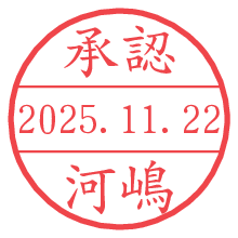 オプションの「電子透かし」をチェックし[生成]すると、見た目には分からないように、UNIXタイムスタンプを識別情報としてPNG形式の日付印に埋め込みます。 日付スタンプメーカーの使い方「部署」「名前」は最大8文字まで入力が可能です。「スタンプの色」を選択し、[生成]ボタン押下で印影画像が更新され、背景を透明に設定したPNG形式とPDF形式の印影画像がリンクからダウンロードできます。 オプションの「電子透かし」は、その性格上日付印ととても相性の良い付加サービスです。 別ページの「タイムスタンプと電子透かし」でも詳しく解説しますが、このオプションを追加することで、日付印が生成された日時に確かにその印が存在していることが証明されます。 ![]() 河嶋さんの電子印鑑が作れます。社内でのデータ書類閲覧確認用など、認印的な使い方のできる電子印鑑が作れます。 ![]() 古代文字で落款印が作れます。「落款スタンプメーカー」で作品を引き立たせる落款印が作れます。