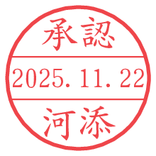 オプションの「電子透かし」をチェックし[生成]すると、見た目には分からないように、UNIXタイムスタンプを識別情報としてPNG形式の日付印に埋め込みます。 日付スタンプメーカーの使い方「部署」「名前」は最大8文字まで入力が可能です。「スタンプの色」を選択し、[生成]ボタン押下で印影画像が更新され、背景を透明に設定したPNG形式とPDF形式の印影画像がリンクからダウンロードできます。 オプションの「電子透かし」は、その性格上日付印ととても相性の良い付加サービスです。 別ページの「タイムスタンプと電子透かし」でも詳しく解説しますが、このオプションを追加することで、日付印が生成された日時に確かにその印が存在していることが証明されます。 ![]() 河添さんの電子印鑑が作れます。社内でのデータ書類閲覧確認用など、認印的な使い方のできる電子印鑑が作れます。 ![]() 古代文字で落款印が作れます。「落款スタンプメーカー」で作品を引き立たせる落款印が作れます。