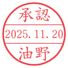 オプションの「電子透かし」をチェックし[生成]すると、見た目には分からないように、UNIXタイムスタンプを識別情報としてPNG形式の日付印に埋め込みます。 日付スタンプメーカーの使い方「部署」「名前」は最大8文字まで入力が可能です。「スタンプの色」を選択し、[生成]ボタン押下で印影画像が更新され、背景を透明に設定したPNG形式とPDF形式の印影画像がリンクからダウンロードできます。 オプションの「電子透かし」は、その性格上日付印ととても相性の良い付加サービスです。 別ページの「タイムスタンプと電子透かし」でも詳しく解説しますが、このオプションを追加することで、日付印が生成された日時に確かにその印が存在していることが証明されます。 ![]() 油野さんの電子印鑑が作れます。社内でのデータ書類閲覧確認用など、認印的な使い方のできる電子印鑑が作れます。 ![]() 古代文字で落款印が作れます。「落款スタンプメーカー」で作品を引き立たせる落款印が作れます。
