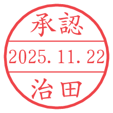 オプションの「電子透かし」をチェックし[生成]すると、見た目には分からないように、UNIXタイムスタンプを識別情報としてPNG形式の日付印に埋め込みます。 日付スタンプメーカーの使い方「部署」「名前」は最大8文字まで入力が可能です。「スタンプの色」を選択し、[生成]ボタン押下で印影画像が更新され、背景を透明に設定したPNG形式とPDF形式の印影画像がリンクからダウンロードできます。 オプションの「電子透かし」は、その性格上日付印ととても相性の良い付加サービスです。 別ページの「タイムスタンプと電子透かし」でも詳しく解説しますが、このオプションを追加することで、日付印が生成された日時に確かにその印が存在していることが証明されます。 ![]() 治田さんの電子印鑑が作れます。社内でのデータ書類閲覧確認用など、認印的な使い方のできる電子印鑑が作れます。 ![]() 古代文字で落款印が作れます。「落款スタンプメーカー」で作品を引き立たせる落款印が作れます。