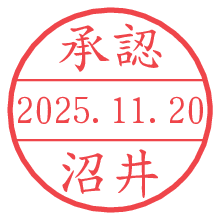 オプションの「電子透かし」をチェックし[生成]すると、見た目には分からないように、UNIXタイムスタンプを識別情報としてPNG形式の日付印に埋め込みます。 日付スタンプメーカーの使い方「部署」「名前」は最大8文字まで入力が可能です。「スタンプの色」を選択し、[生成]ボタン押下で印影画像が更新され、背景を透明に設定したPNG形式とPDF形式の印影画像がリンクからダウンロードできます。 オプションの「電子透かし」は、その性格上日付印ととても相性の良い付加サービスです。 別ページの「タイムスタンプと電子透かし」でも詳しく解説しますが、このオプションを追加することで、日付印が生成された日時に確かにその印が存在していることが証明されます。 ![]() 沼井さんの電子印鑑が作れます。社内でのデータ書類閲覧確認用など、認印的な使い方のできる電子印鑑が作れます。 ![]() 古代文字で落款印が作れます。「落款スタンプメーカー」で作品を引き立たせる落款印が作れます。