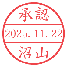 オプションの「電子透かし」をチェックし[生成]すると、見た目には分からないように、UNIXタイムスタンプを識別情報としてPNG形式の日付印に埋め込みます。 日付スタンプメーカーの使い方「部署」「名前」は最大8文字まで入力が可能です。「スタンプの色」を選択し、[生成]ボタン押下で印影画像が更新され、背景を透明に設定したPNG形式とPDF形式の印影画像がリンクからダウンロードできます。 オプションの「電子透かし」は、その性格上日付印ととても相性の良い付加サービスです。 別ページの「タイムスタンプと電子透かし」でも詳しく解説しますが、このオプションを追加することで、日付印が生成された日時に確かにその印が存在していることが証明されます。 ![]() 沼山さんの電子印鑑が作れます。社内でのデータ書類閲覧確認用など、認印的な使い方のできる電子印鑑が作れます。 ![]() 古代文字で落款印が作れます。「落款スタンプメーカー」で作品を引き立たせる落款印が作れます。