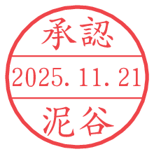 オプションの「電子透かし」をチェックし[生成]すると、見た目には分からないように、UNIXタイムスタンプを識別情報としてPNG形式の日付印に埋め込みます。 日付スタンプメーカーの使い方「部署」「名前」は最大8文字まで入力が可能です。「スタンプの色」を選択し、[生成]ボタン押下で印影画像が更新され、背景を透明に設定したPNG形式とPDF形式の印影画像がリンクからダウンロードできます。 オプションの「電子透かし」は、その性格上日付印ととても相性の良い付加サービスです。 別ページの「タイムスタンプと電子透かし」でも詳しく解説しますが、このオプションを追加することで、日付印が生成された日時に確かにその印が存在していることが証明されます。 ![]() 泥谷さんの電子印鑑が作れます。社内でのデータ書類閲覧確認用など、認印的な使い方のできる電子印鑑が作れます。 ![]() 古代文字で落款印が作れます。「落款スタンプメーカー」で作品を引き立たせる落款印が作れます。