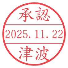 オプションの「電子透かし」をチェックし[生成]すると、見た目には分からないように、UNIXタイムスタンプを識別情報としてPNG形式の日付印に埋め込みます。 日付スタンプメーカーの使い方「部署」「名前」は最大8文字まで入力が可能です。「スタンプの色」を選択し、[生成]ボタン押下で印影画像が更新され、背景を透明に設定したPNG形式とPDF形式の印影画像がリンクからダウンロードできます。 オプションの「電子透かし」は、その性格上日付印ととても相性の良い付加サービスです。 別ページの「タイムスタンプと電子透かし」でも詳しく解説しますが、このオプションを追加することで、日付印が生成された日時に確かにその印が存在していることが証明されます。 ![]() 津波さんの電子印鑑が作れます。社内でのデータ書類閲覧確認用など、認印的な使い方のできる電子印鑑が作れます。 ![]() 古代文字で落款印が作れます。「落款スタンプメーカー」で作品を引き立たせる落款印が作れます。