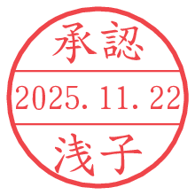 オプションの「電子透かし」をチェックし[生成]すると、見た目には分からないように、UNIXタイムスタンプを識別情報としてPNG形式の日付印に埋め込みます。 日付スタンプメーカーの使い方「部署」「名前」は最大8文字まで入力が可能です。「スタンプの色」を選択し、[生成]ボタン押下で印影画像が更新され、背景を透明に設定したPNG形式とPDF形式の印影画像がリンクからダウンロードできます。 オプションの「電子透かし」は、その性格上日付印ととても相性の良い付加サービスです。 別ページの「タイムスタンプと電子透かし」でも詳しく解説しますが、このオプションを追加することで、日付印が生成された日時に確かにその印が存在していることが証明されます。 ![]() 浅子さんの電子印鑑が作れます。社内でのデータ書類閲覧確認用など、認印的な使い方のできる電子印鑑が作れます。 ![]() 古代文字で落款印が作れます。「落款スタンプメーカー」で作品を引き立たせる落款印が作れます。