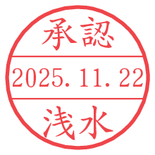 オプションの「電子透かし」をチェックし[生成]すると、見た目には分からないように、UNIXタイムスタンプを識別情報としてPNG形式の日付印に埋め込みます。 日付スタンプメーカーの使い方「部署」「名前」は最大8文字まで入力が可能です。「スタンプの色」を選択し、[生成]ボタン押下で印影画像が更新され、背景を透明に設定したPNG形式とPDF形式の印影画像がリンクからダウンロードできます。 オプションの「電子透かし」は、その性格上日付印ととても相性の良い付加サービスです。 別ページの「タイムスタンプと電子透かし」でも詳しく解説しますが、このオプションを追加することで、日付印が生成された日時に確かにその印が存在していることが証明されます。 ![]() 浅水さんの電子印鑑が作れます。社内でのデータ書類閲覧確認用など、認印的な使い方のできる電子印鑑が作れます。 ![]() 古代文字で落款印が作れます。「落款スタンプメーカー」で作品を引き立たせる落款印が作れます。