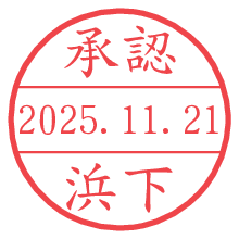 オプションの「電子透かし」をチェックし[生成]すると、見た目には分からないように、UNIXタイムスタンプを識別情報としてPNG形式の日付印に埋め込みます。 日付スタンプメーカーの使い方「部署」「名前」は最大8文字まで入力が可能です。「スタンプの色」を選択し、[生成]ボタン押下で印影画像が更新され、背景を透明に設定したPNG形式とPDF形式の印影画像がリンクからダウンロードできます。 オプションの「電子透かし」は、その性格上日付印ととても相性の良い付加サービスです。 別ページの「タイムスタンプと電子透かし」でも詳しく解説しますが、このオプションを追加することで、日付印が生成された日時に確かにその印が存在していることが証明されます。 ![]() 浜下さんの電子印鑑が作れます。社内でのデータ書類閲覧確認用など、認印的な使い方のできる電子印鑑が作れます。 ![]() 古代文字で落款印が作れます。「落款スタンプメーカー」で作品を引き立たせる落款印が作れます。