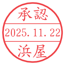 オプションの「電子透かし」をチェックし[生成]すると、見た目には分からないように、UNIXタイムスタンプを識別情報としてPNG形式の日付印に埋め込みます。 日付スタンプメーカーの使い方「部署」「名前」は最大8文字まで入力が可能です。「スタンプの色」を選択し、[生成]ボタン押下で印影画像が更新され、背景を透明に設定したPNG形式とPDF形式の印影画像がリンクからダウンロードできます。 オプションの「電子透かし」は、その性格上日付印ととても相性の良い付加サービスです。 別ページの「タイムスタンプと電子透かし」でも詳しく解説しますが、このオプションを追加することで、日付印が生成された日時に確かにその印が存在していることが証明されます。 ![]() 浜屋さんの電子印鑑が作れます。社内でのデータ書類閲覧確認用など、認印的な使い方のできる電子印鑑が作れます。 ![]() 古代文字で落款印が作れます。「落款スタンプメーカー」で作品を引き立たせる落款印が作れます。