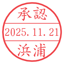 オプションの「電子透かし」をチェックし[生成]すると、見た目には分からないように、UNIXタイムスタンプを識別情報としてPNG形式の日付印に埋め込みます。 日付スタンプメーカーの使い方「部署」「名前」は最大8文字まで入力が可能です。「スタンプの色」を選択し、[生成]ボタン押下で印影画像が更新され、背景を透明に設定したPNG形式とPDF形式の印影画像がリンクからダウンロードできます。 オプションの「電子透かし」は、その性格上日付印ととても相性の良い付加サービスです。 別ページの「タイムスタンプと電子透かし」でも詳しく解説しますが、このオプションを追加することで、日付印が生成された日時に確かにその印が存在していることが証明されます。 ![]() 浜浦さんの電子印鑑が作れます。社内でのデータ書類閲覧確認用など、認印的な使い方のできる電子印鑑が作れます。 ![]() 古代文字で落款印が作れます。「落款スタンプメーカー」で作品を引き立たせる落款印が作れます。