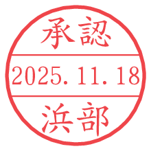 オプションの「電子透かし」をチェックし[生成]すると、見た目には分からないように、UNIXタイムスタンプを識別情報としてPNG形式の日付印に埋め込みます。 日付スタンプメーカーの使い方「部署」「名前」は最大8文字まで入力が可能です。「スタンプの色」を選択し、[生成]ボタン押下で印影画像が更新され、背景を透明に設定したPNG形式とPDF形式の印影画像がリンクからダウンロードできます。 オプションの「電子透かし」は、その性格上日付印ととても相性の良い付加サービスです。 別ページの「タイムスタンプと電子透かし」でも詳しく解説しますが、このオプションを追加することで、日付印が生成された日時に確かにその印が存在していることが証明されます。 ![]() 浜部さんの電子印鑑が作れます。社内でのデータ書類閲覧確認用など、認印的な使い方のできる電子印鑑が作れます。 ![]() 古代文字で落款印が作れます。「落款スタンプメーカー」で作品を引き立たせる落款印が作れます。