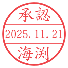オプションの「電子透かし」をチェックし[生成]すると、見た目には分からないように、UNIXタイムスタンプを識別情報としてPNG形式の日付印に埋め込みます。 日付スタンプメーカーの使い方「部署」「名前」は最大8文字まで入力が可能です。「スタンプの色」を選択し、[生成]ボタン押下で印影画像が更新され、背景を透明に設定したPNG形式とPDF形式の印影画像がリンクからダウンロードできます。 オプションの「電子透かし」は、その性格上日付印ととても相性の良い付加サービスです。 別ページの「タイムスタンプと電子透かし」でも詳しく解説しますが、このオプションを追加することで、日付印が生成された日時に確かにその印が存在していることが証明されます。 ![]() 海渕さんの電子印鑑が作れます。社内でのデータ書類閲覧確認用など、認印的な使い方のできる電子印鑑が作れます。 ![]() 古代文字で落款印が作れます。「落款スタンプメーカー」で作品を引き立たせる落款印が作れます。