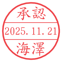 オプションの「電子透かし」をチェックし[生成]すると、見た目には分からないように、UNIXタイムスタンプを識別情報としてPNG形式の日付印に埋め込みます。 日付スタンプメーカーの使い方「部署」「名前」は最大8文字まで入力が可能です。「スタンプの色」を選択し、[生成]ボタン押下で印影画像が更新され、背景を透明に設定したPNG形式とPDF形式の印影画像がリンクからダウンロードできます。 オプションの「電子透かし」は、その性格上日付印ととても相性の良い付加サービスです。 別ページの「タイムスタンプと電子透かし」でも詳しく解説しますが、このオプションを追加することで、日付印が生成された日時に確かにその印が存在していることが証明されます。 ![]() 海澤さんの電子印鑑が作れます。社内でのデータ書類閲覧確認用など、認印的な使い方のできる電子印鑑が作れます。 ![]() 古代文字で落款印が作れます。「落款スタンプメーカー」で作品を引き立たせる落款印が作れます。