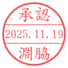 オプションの「電子透かし」をチェックし[生成]すると、見た目には分からないように、UNIXタイムスタンプを識別情報としてPNG形式の日付印に埋め込みます。 日付スタンプメーカーの使い方「部署」「名前」は最大8文字まで入力が可能です。「スタンプの色」を選択し、[生成]ボタン押下で印影画像が更新され、背景を透明に設定したPNG形式とPDF形式の印影画像がリンクからダウンロードできます。 オプションの「電子透かし」は、その性格上日付印ととても相性の良い付加サービスです。 別ページの「タイムスタンプと電子透かし」でも詳しく解説しますが、このオプションを追加することで、日付印が生成された日時に確かにその印が存在していることが証明されます。 ![]() 淵脇さんの電子印鑑が作れます。社内でのデータ書類閲覧確認用など、認印的な使い方のできる電子印鑑が作れます。 ![]() 古代文字で落款印が作れます。「落款スタンプメーカー」で作品を引き立たせる落款印が作れます。