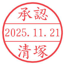 オプションの「電子透かし」をチェックし[生成]すると、見た目には分からないように、UNIXタイムスタンプを識別情報としてPNG形式の日付印に埋め込みます。 日付スタンプメーカーの使い方「部署」「名前」は最大8文字まで入力が可能です。「スタンプの色」を選択し、[生成]ボタン押下で印影画像が更新され、背景を透明に設定したPNG形式とPDF形式の印影画像がリンクからダウンロードできます。 オプションの「電子透かし」は、その性格上日付印ととても相性の良い付加サービスです。 別ページの「タイムスタンプと電子透かし」でも詳しく解説しますが、このオプションを追加することで、日付印が生成された日時に確かにその印が存在していることが証明されます。 ![]() 清塚さんの電子印鑑が作れます。社内でのデータ書類閲覧確認用など、認印的な使い方のできる電子印鑑が作れます。 ![]() 古代文字で落款印が作れます。「落款スタンプメーカー」で作品を引き立たせる落款印が作れます。