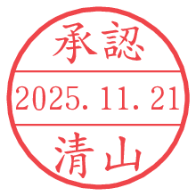 オプションの「電子透かし」をチェックし[生成]すると、見た目には分からないように、UNIXタイムスタンプを識別情報としてPNG形式の日付印に埋め込みます。 日付スタンプメーカーの使い方「部署」「名前」は最大8文字まで入力が可能です。「スタンプの色」を選択し、[生成]ボタン押下で印影画像が更新され、背景を透明に設定したPNG形式とPDF形式の印影画像がリンクからダウンロードできます。 オプションの「電子透かし」は、その性格上日付印ととても相性の良い付加サービスです。 別ページの「タイムスタンプと電子透かし」でも詳しく解説しますが、このオプションを追加することで、日付印が生成された日時に確かにその印が存在していることが証明されます。 ![]() 清山さんの電子印鑑が作れます。社内でのデータ書類閲覧確認用など、認印的な使い方のできる電子印鑑が作れます。 ![]() 古代文字で落款印が作れます。「落款スタンプメーカー」で作品を引き立たせる落款印が作れます。