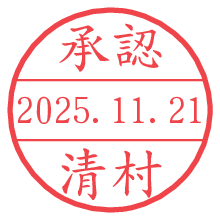 オプションの「電子透かし」をチェックし[生成]すると、見た目には分からないように、UNIXタイムスタンプを識別情報としてPNG形式の日付印に埋め込みます。 日付スタンプメーカーの使い方「部署」「名前」は最大8文字まで入力が可能です。「スタンプの色」を選択し、[生成]ボタン押下で印影画像が更新され、背景を透明に設定したPNG形式とPDF形式の印影画像がリンクからダウンロードできます。 オプションの「電子透かし」は、その性格上日付印ととても相性の良い付加サービスです。 別ページの「タイムスタンプと電子透かし」でも詳しく解説しますが、このオプションを追加することで、日付印が生成された日時に確かにその印が存在していることが証明されます。 ![]() 清村さんの電子印鑑が作れます。社内でのデータ書類閲覧確認用など、認印的な使い方のできる電子印鑑が作れます。 ![]() 古代文字で落款印が作れます。「落款スタンプメーカー」で作品を引き立たせる落款印が作れます。