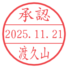 オプションの「電子透かし」をチェックし[生成]すると、見た目には分からないように、UNIXタイムスタンプを識別情報としてPNG形式の日付印に埋め込みます。 日付スタンプメーカーの使い方「部署」「名前」は最大8文字まで入力が可能です。「スタンプの色」を選択し、[生成]ボタン押下で印影画像が更新され、背景を透明に設定したPNG形式とPDF形式の印影画像がリンクからダウンロードできます。 オプションの「電子透かし」は、その性格上日付印ととても相性の良い付加サービスです。 別ページの「タイムスタンプと電子透かし」でも詳しく解説しますが、このオプションを追加することで、日付印が生成された日時に確かにその印が存在していることが証明されます。 ![]() 渡久山さんの電子印鑑が作れます。社内でのデータ書類閲覧確認用など、認印的な使い方のできる電子印鑑が作れます。 ![]() 古代文字で落款印が作れます。「落款スタンプメーカー」で作品を引き立たせる落款印が作れます。