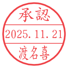 オプションの「電子透かし」をチェックし[生成]すると、見た目には分からないように、UNIXタイムスタンプを識別情報としてPNG形式の日付印に埋め込みます。 日付スタンプメーカーの使い方「部署」「名前」は最大8文字まで入力が可能です。「スタンプの色」を選択し、[生成]ボタン押下で印影画像が更新され、背景を透明に設定したPNG形式とPDF形式の印影画像がリンクからダウンロードできます。 オプションの「電子透かし」は、その性格上日付印ととても相性の良い付加サービスです。 別ページの「タイムスタンプと電子透かし」でも詳しく解説しますが、このオプションを追加することで、日付印が生成された日時に確かにその印が存在していることが証明されます。 ![]() 渡名喜さんの電子印鑑が作れます。社内でのデータ書類閲覧確認用など、認印的な使い方のできる電子印鑑が作れます。 ![]() 古代文字で落款印が作れます。「落款スタンプメーカー」で作品を引き立たせる落款印が作れます。