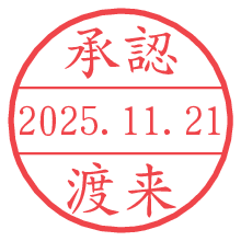 オプションの「電子透かし」をチェックし[生成]すると、見た目には分からないように、UNIXタイムスタンプを識別情報としてPNG形式の日付印に埋め込みます。 日付スタンプメーカーの使い方「部署」「名前」は最大8文字まで入力が可能です。「スタンプの色」を選択し、[生成]ボタン押下で印影画像が更新され、背景を透明に設定したPNG形式とPDF形式の印影画像がリンクからダウンロードできます。 オプションの「電子透かし」は、その性格上日付印ととても相性の良い付加サービスです。 別ページの「タイムスタンプと電子透かし」でも詳しく解説しますが、このオプションを追加することで、日付印が生成された日時に確かにその印が存在していることが証明されます。 ![]() 渡来さんの電子印鑑が作れます。社内でのデータ書類閲覧確認用など、認印的な使い方のできる電子印鑑が作れます。 ![]() 古代文字で落款印が作れます。「落款スタンプメーカー」で作品を引き立たせる落款印が作れます。