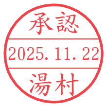 オプションの「電子透かし」をチェックし[生成]すると、見た目には分からないように、UNIXタイムスタンプを識別情報としてPNG形式の日付印に埋め込みます。 日付スタンプメーカーの使い方「部署」「名前」は最大8文字まで入力が可能です。「スタンプの色」を選択し、[生成]ボタン押下で印影画像が更新され、背景を透明に設定したPNG形式とPDF形式の印影画像がリンクからダウンロードできます。 オプションの「電子透かし」は、その性格上日付印ととても相性の良い付加サービスです。 別ページの「タイムスタンプと電子透かし」でも詳しく解説しますが、このオプションを追加することで、日付印が生成された日時に確かにその印が存在していることが証明されます。 ![]() 湯村さんの電子印鑑が作れます。社内でのデータ書類閲覧確認用など、認印的な使い方のできる電子印鑑が作れます。 ![]() 古代文字で落款印が作れます。「落款スタンプメーカー」で作品を引き立たせる落款印が作れます。