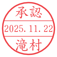 オプションの「電子透かし」をチェックし[生成]すると、見た目には分からないように、UNIXタイムスタンプを識別情報としてPNG形式の日付印に埋め込みます。 日付スタンプメーカーの使い方「部署」「名前」は最大8文字まで入力が可能です。「スタンプの色」を選択し、[生成]ボタン押下で印影画像が更新され、背景を透明に設定したPNG形式とPDF形式の印影画像がリンクからダウンロードできます。 オプションの「電子透かし」は、その性格上日付印ととても相性の良い付加サービスです。 別ページの「タイムスタンプと電子透かし」でも詳しく解説しますが、このオプションを追加することで、日付印が生成された日時に確かにその印が存在していることが証明されます。 ![]() 滝村さんの電子印鑑が作れます。社内でのデータ書類閲覧確認用など、認印的な使い方のできる電子印鑑が作れます。 ![]() 古代文字で落款印が作れます。「落款スタンプメーカー」で作品を引き立たせる落款印が作れます。