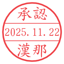 オプションの「電子透かし」をチェックし[生成]すると、見た目には分からないように、UNIXタイムスタンプを識別情報としてPNG形式の日付印に埋め込みます。 日付スタンプメーカーの使い方「部署」「名前」は最大8文字まで入力が可能です。「スタンプの色」を選択し、[生成]ボタン押下で印影画像が更新され、背景を透明に設定したPNG形式とPDF形式の印影画像がリンクからダウンロードできます。 オプションの「電子透かし」は、その性格上日付印ととても相性の良い付加サービスです。 別ページの「タイムスタンプと電子透かし」でも詳しく解説しますが、このオプションを追加することで、日付印が生成された日時に確かにその印が存在していることが証明されます。 ![]() 漢那さんの電子印鑑が作れます。社内でのデータ書類閲覧確認用など、認印的な使い方のできる電子印鑑が作れます。 ![]() 古代文字で落款印が作れます。「落款スタンプメーカー」で作品を引き立たせる落款印が作れます。