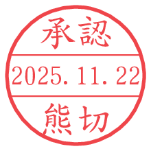 オプションの「電子透かし」をチェックし[生成]すると、見た目には分からないように、UNIXタイムスタンプを識別情報としてPNG形式の日付印に埋め込みます。 日付スタンプメーカーの使い方「部署」「名前」は最大8文字まで入力が可能です。「スタンプの色」を選択し、[生成]ボタン押下で印影画像が更新され、背景を透明に設定したPNG形式とPDF形式の印影画像がリンクからダウンロードできます。 オプションの「電子透かし」は、その性格上日付印ととても相性の良い付加サービスです。 別ページの「タイムスタンプと電子透かし」でも詳しく解説しますが、このオプションを追加することで、日付印が生成された日時に確かにその印が存在していることが証明されます。 ![]() 熊切さんの電子印鑑が作れます。社内でのデータ書類閲覧確認用など、認印的な使い方のできる電子印鑑が作れます。 ![]() 古代文字で落款印が作れます。「落款スタンプメーカー」で作品を引き立たせる落款印が作れます。