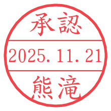 オプションの「電子透かし」をチェックし[生成]すると、見た目には分からないように、UNIXタイムスタンプを識別情報としてPNG形式の日付印に埋め込みます。 日付スタンプメーカーの使い方「部署」「名前」は最大8文字まで入力が可能です。「スタンプの色」を選択し、[生成]ボタン押下で印影画像が更新され、背景を透明に設定したPNG形式とPDF形式の印影画像がリンクからダウンロードできます。 オプションの「電子透かし」は、その性格上日付印ととても相性の良い付加サービスです。 別ページの「タイムスタンプと電子透かし」でも詳しく解説しますが、このオプションを追加することで、日付印が生成された日時に確かにその印が存在していることが証明されます。 ![]() 熊滝さんの電子印鑑が作れます。社内でのデータ書類閲覧確認用など、認印的な使い方のできる電子印鑑が作れます。 ![]() 古代文字で落款印が作れます。「落款スタンプメーカー」で作品を引き立たせる落款印が作れます。