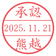 オプションの「電子透かし」をチェックし[生成]すると、見た目には分からないように、UNIXタイムスタンプを識別情報としてPNG形式の日付印に埋め込みます。 日付スタンプメーカーの使い方「部署」「名前」は最大8文字まで入力が可能です。「スタンプの色」を選択し、[生成]ボタン押下で印影画像が更新され、背景を透明に設定したPNG形式とPDF形式の印影画像がリンクからダウンロードできます。 オプションの「電子透かし」は、その性格上日付印ととても相性の良い付加サービスです。 別ページの「タイムスタンプと電子透かし」でも詳しく解説しますが、このオプションを追加することで、日付印が生成された日時に確かにその印が存在していることが証明されます。 ![]() 熊越さんの電子印鑑が作れます。社内でのデータ書類閲覧確認用など、認印的な使い方のできる電子印鑑が作れます。 ![]() 古代文字で落款印が作れます。「落款スタンプメーカー」で作品を引き立たせる落款印が作れます。