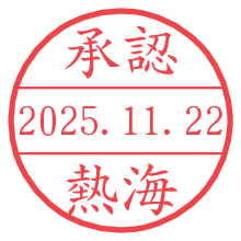 オプションの「電子透かし」をチェックし[生成]すると、見た目には分からないように、UNIXタイムスタンプを識別情報としてPNG形式の日付印に埋め込みます。 日付スタンプメーカーの使い方「部署」「名前」は最大8文字まで入力が可能です。「スタンプの色」を選択し、[生成]ボタン押下で印影画像が更新され、背景を透明に設定したPNG形式とPDF形式の印影画像がリンクからダウンロードできます。 オプションの「電子透かし」は、その性格上日付印ととても相性の良い付加サービスです。 別ページの「タイムスタンプと電子透かし」でも詳しく解説しますが、このオプションを追加することで、日付印が生成された日時に確かにその印が存在していることが証明されます。 ![]() 熱海さんの電子印鑑が作れます。社内でのデータ書類閲覧確認用など、認印的な使い方のできる電子印鑑が作れます。 ![]() 古代文字で落款印が作れます。「落款スタンプメーカー」で作品を引き立たせる落款印が作れます。