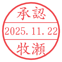 オプションの「電子透かし」をチェックし[生成]すると、見た目には分からないように、UNIXタイムスタンプを識別情報としてPNG形式の日付印に埋め込みます。 日付スタンプメーカーの使い方「部署」「名前」は最大8文字まで入力が可能です。「スタンプの色」を選択し、[生成]ボタン押下で印影画像が更新され、背景を透明に設定したPNG形式とPDF形式の印影画像がリンクからダウンロードできます。 オプションの「電子透かし」は、その性格上日付印ととても相性の良い付加サービスです。 別ページの「タイムスタンプと電子透かし」でも詳しく解説しますが、このオプションを追加することで、日付印が生成された日時に確かにその印が存在していることが証明されます。 ![]() 牧瀬さんの電子印鑑が作れます。社内でのデータ書類閲覧確認用など、認印的な使い方のできる電子印鑑が作れます。 ![]() 古代文字で落款印が作れます。「落款スタンプメーカー」で作品を引き立たせる落款印が作れます。