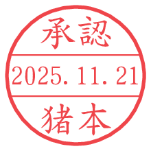 オプションの「電子透かし」をチェックし[生成]すると、見た目には分からないように、UNIXタイムスタンプを識別情報としてPNG形式の日付印に埋め込みます。 日付スタンプメーカーの使い方「部署」「名前」は最大8文字まで入力が可能です。「スタンプの色」を選択し、[生成]ボタン押下で印影画像が更新され、背景を透明に設定したPNG形式とPDF形式の印影画像がリンクからダウンロードできます。 オプションの「電子透かし」は、その性格上日付印ととても相性の良い付加サービスです。 別ページの「タイムスタンプと電子透かし」でも詳しく解説しますが、このオプションを追加することで、日付印が生成された日時に確かにその印が存在していることが証明されます。 ![]() 猪本さんの電子印鑑が作れます。社内でのデータ書類閲覧確認用など、認印的な使い方のできる電子印鑑が作れます。 ![]() 古代文字で落款印が作れます。「落款スタンプメーカー」で作品を引き立たせる落款印が作れます。