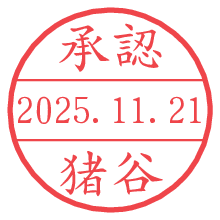 オプションの「電子透かし」をチェックし[生成]すると、見た目には分からないように、UNIXタイムスタンプを識別情報としてPNG形式の日付印に埋め込みます。 日付スタンプメーカーの使い方「部署」「名前」は最大8文字まで入力が可能です。「スタンプの色」を選択し、[生成]ボタン押下で印影画像が更新され、背景を透明に設定したPNG形式とPDF形式の印影画像がリンクからダウンロードできます。 オプションの「電子透かし」は、その性格上日付印ととても相性の良い付加サービスです。 別ページの「タイムスタンプと電子透かし」でも詳しく解説しますが、このオプションを追加することで、日付印が生成された日時に確かにその印が存在していることが証明されます。 ![]() 猪谷さんの電子印鑑が作れます。社内でのデータ書類閲覧確認用など、認印的な使い方のできる電子印鑑が作れます。 ![]() 古代文字で落款印が作れます。「落款スタンプメーカー」で作品を引き立たせる落款印が作れます。