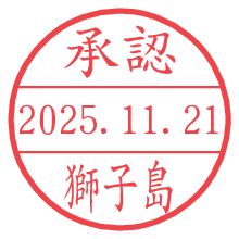 オプションの「電子透かし」をチェックし[生成]すると、見た目には分からないように、UNIXタイムスタンプを識別情報としてPNG形式の日付印に埋め込みます。 日付スタンプメーカーの使い方「部署」「名前」は最大8文字まで入力が可能です。「スタンプの色」を選択し、[生成]ボタン押下で印影画像が更新され、背景を透明に設定したPNG形式とPDF形式の印影画像がリンクからダウンロードできます。 オプションの「電子透かし」は、その性格上日付印ととても相性の良い付加サービスです。 別ページの「タイムスタンプと電子透かし」でも詳しく解説しますが、このオプションを追加することで、日付印が生成された日時に確かにその印が存在していることが証明されます。 ![]() 獅子島さんの電子印鑑が作れます。社内でのデータ書類閲覧確認用など、認印的な使い方のできる電子印鑑が作れます。 ![]() 古代文字で落款印が作れます。「落款スタンプメーカー」で作品を引き立たせる落款印が作れます。