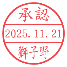 オプションの「電子透かし」をチェックし[生成]すると、見た目には分からないように、UNIXタイムスタンプを識別情報としてPNG形式の日付印に埋め込みます。 日付スタンプメーカーの使い方「部署」「名前」は最大8文字まで入力が可能です。「スタンプの色」を選択し、[生成]ボタン押下で印影画像が更新され、背景を透明に設定したPNG形式とPDF形式の印影画像がリンクからダウンロードできます。 オプションの「電子透かし」は、その性格上日付印ととても相性の良い付加サービスです。 別ページの「タイムスタンプと電子透かし」でも詳しく解説しますが、このオプションを追加することで、日付印が生成された日時に確かにその印が存在していることが証明されます。 ![]() 獅子野さんの電子印鑑が作れます。社内でのデータ書類閲覧確認用など、認印的な使い方のできる電子印鑑が作れます。 ![]() 古代文字で落款印が作れます。「落款スタンプメーカー」で作品を引き立たせる落款印が作れます。