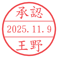 オプションの「電子透かし」をチェックし[生成]すると、見た目には分からないように、UNIXタイムスタンプを識別情報としてPNG形式の日付印に埋め込みます。 日付スタンプメーカーの使い方「部署」「名前」は最大8文字まで入力が可能です。「スタンプの色」を選択し、[生成]ボタン押下で印影画像が更新され、背景を透明に設定したPNG形式とPDF形式の印影画像がリンクからダウンロードできます。 オプションの「電子透かし」は、その性格上日付印ととても相性の良い付加サービスです。 別ページの「タイムスタンプと電子透かし」でも詳しく解説しますが、このオプションを追加することで、日付印が生成された日時に確かにその印が存在していることが証明されます。 ![]() 王野さんの電子印鑑が作れます。社内でのデータ書類閲覧確認用など、認印的な使い方のできる電子印鑑が作れます。 ![]() 古代文字で落款印が作れます。「落款スタンプメーカー」で作品を引き立たせる落款印が作れます。